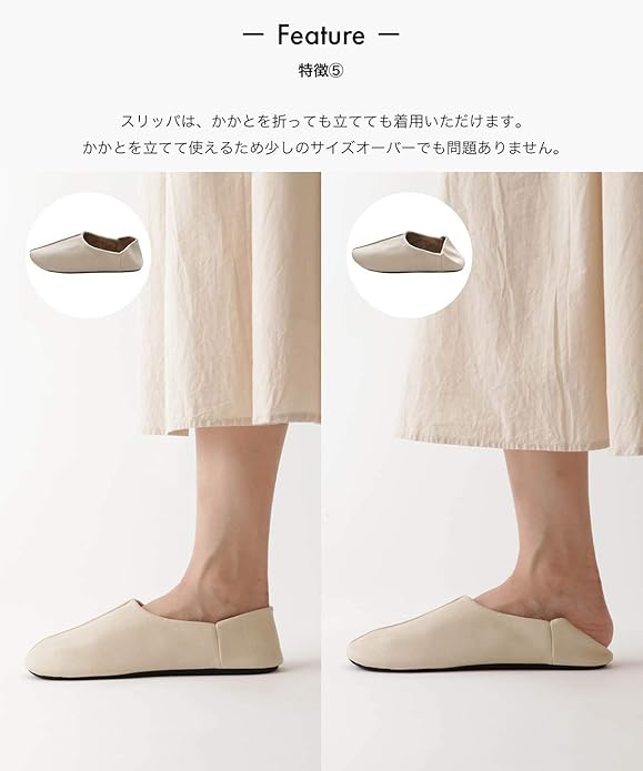 ●かかとを折っても立てても着用いただけます。かかとを立てて使えるため少しのサイズオーバーでも問題ありません。