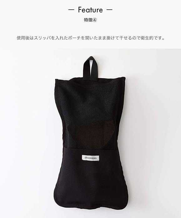 ●使用後はスリッパを入れたポーチを開いたまま掛けて干せるので衛生的です。