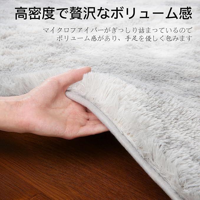 【超ソフトな感触、暖かいです】- 40mmの長い毛足で、極細繊維素材100%で、ふわふわで弾力性にも優れています。100%極細繊維素材をしっかり裁縫されておるため、コロコロでも毛が抜けません。裸足で歩くのに最適で、赤ちゃんの腹ばいの時間にも最適です。このラグは子供やペットに最適です。夏は冷房対策、耐熱合格の試験も実証されたので冬はホットカーペット・床暖房等に対応できます。