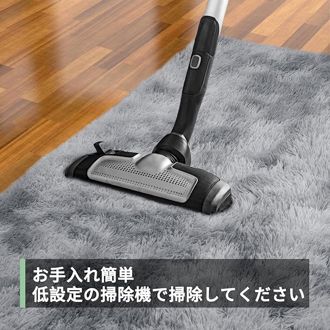 【洗えるラグ】- 毎日、手持ち式掃除機で掃除機をかけるだけです。手洗いまたは洗濯機で洗えます。お洗濯用ネットの使用をおすすめします。より深く掃除したい場合は、中性洗剤を加えて、シャギーエリアラグを手で優しく洗ってください。その後、風通しの良い場所を選び、ラグを広げるか、吊るして自然乾燥させます。日光に当てないでください。折り畳み再使用しても折畳む痕が残らないです。