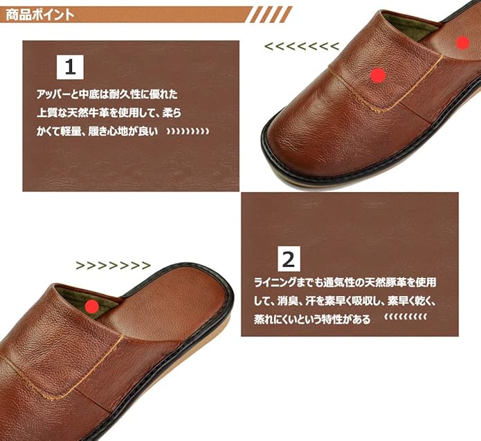 【上品&耐久性&快適&防臭】本革を使用しているので、上品で高級感があり、耐久性にも優れて長期に渡ってご使用頂けます。ご使用頂くことによって、革が足に馴染んできますので、まるで身体の一部のように、快適にお過ごし頂けます。天然な素材を採用、 防菌防臭機能を揃えています。