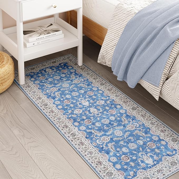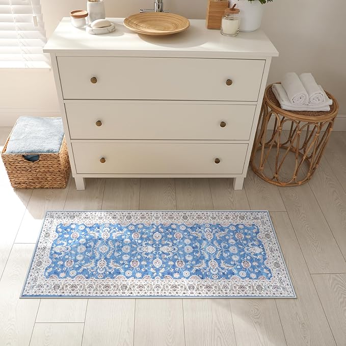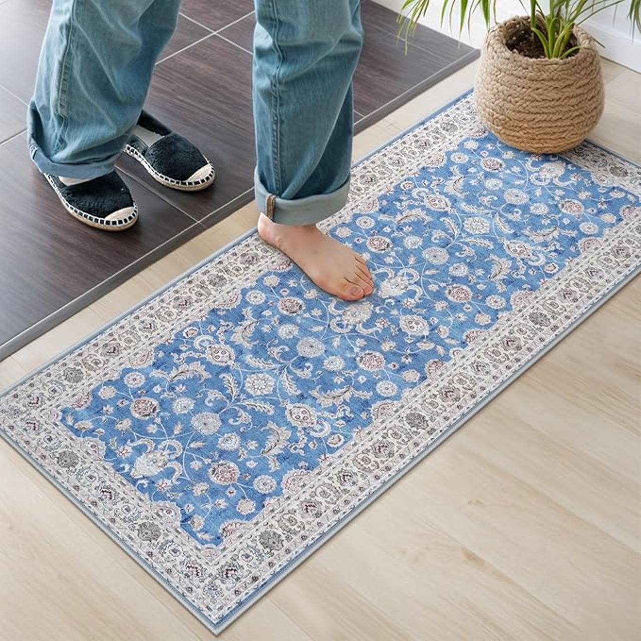 HAOCOO 玄関マット 室内 ペルシャ絨毯風 キッチンマット 洗える 滑り止め 45х120cm ラグマット 廊下敷き オールシーズン 耐磨耗性 防音 室外 シェニール適用 抗菌防臭 軽量 ライトブルー | KAZESHOP