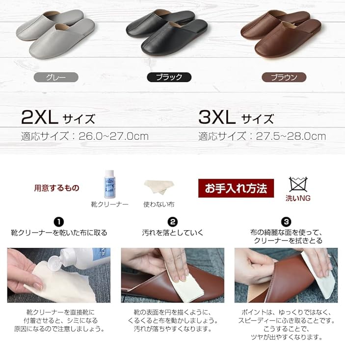 【蒸れにくい】それに、高級PUスリッパのライニングが汗を素早く吸収し、素早く乾く、蒸れにくいという特性があり、それもレザースリッパの履き心地がアップされたことの1ポイントである。ライニングが通気性の豚革で仕上げたため、動物の匂いがなく、皮目が細くて甲との磨耗が少なく、しなやかでスムーズな質感が特長。