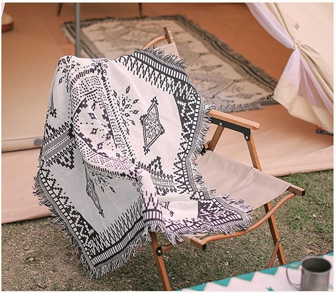 【多用途デザイン】このキャンプラグマットは、アウトドアからインテリアまで幅広く活用できます。オルテガ柄のモノクロデザインが、どんな空間にもスタイリッシュなアクセントを加え、キャンプやピクニック、リビングルームの装飾としても最適です