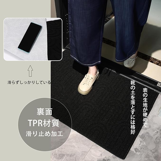 【製品仕様】サイズ:50x80cm 60x90cm 表面素材:ポリプロピレン繊維;裏面素材:熱可塑性エラストマー(TPR)細かい縫い目で二重の編み構造を作ります。優れた強度と耐摩耗性を持ち、丈夫で長持ちです。長時間踏みつけても変形しません。※サイズは平置き手採寸サイズとなりますので測り方により 1~2cm前後の誤差が出る場合がございます。