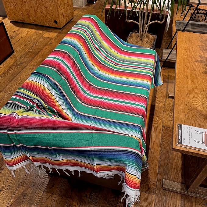 西海岸 インテリア メキシカン ラグ マット オシャレ に演出 大判 レジャーシート ネイティブ柄 オルテガ柄 エルパソ サドルブランケット 好きにも ソファーカバー チマヨ ,マルチカバー,緑,150X210cm | KAZESHOP
