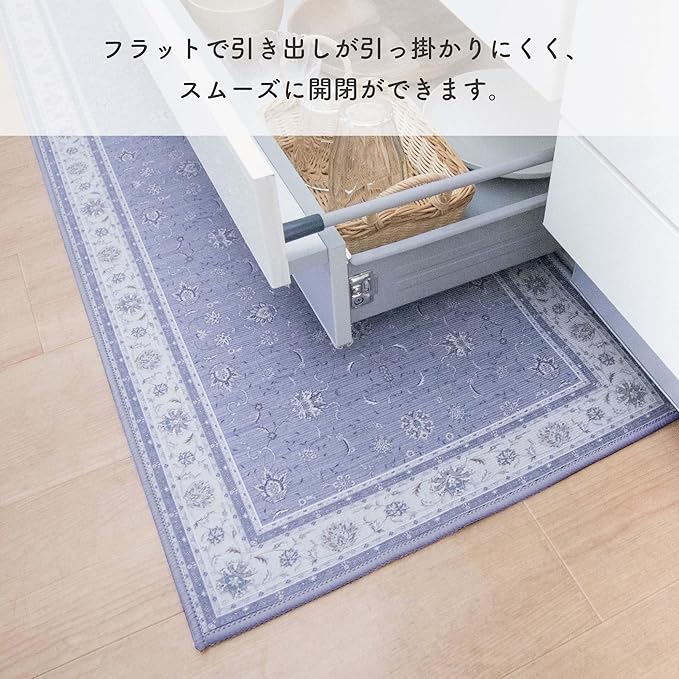 フラットなので引き出しの下に敷いても開閉しやすく、掃除機がかけやすいのでホコリもたまりにくいです。ずれにくいすべり止め加工。