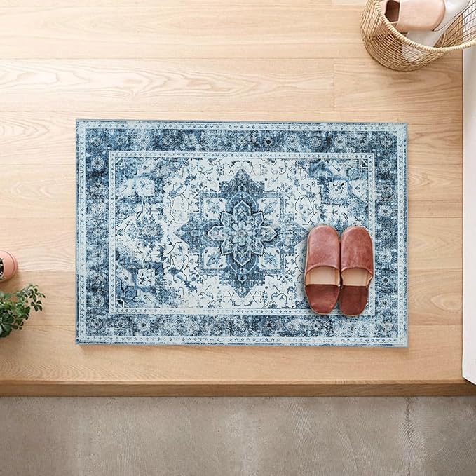 カーペット ラグ マット ペルシャ風 絨毯風 花柄 オールシーズン適用 滑り止め付き 寝室 リビング 玄関マット 地毯 じゅうたん 洗える 防音マット 防ダニ 防臭 (柄B, 50 80cm) | KAZESHOP