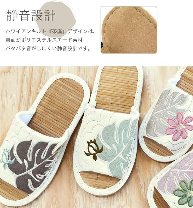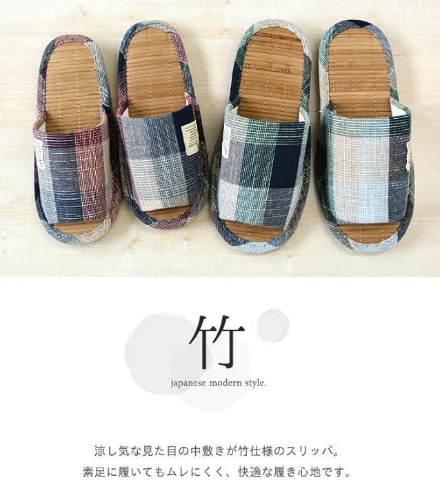 [ラガルト] スリッパ 竹 おしゃれ 部屋履き 竹スリッパ 天然 茶竹 竹中 健康 メンズ レディース 竹素材 室内 来客用 大きいサイズ 夏スリッパ オールシーズン 春夏 真夏 ビックモンステラアップリケ チェック柄 茶竹スリッパ | KAZESHOP