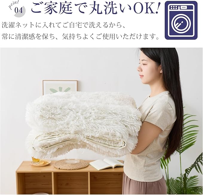 【洗濯機OK!簡単お手入れ】洗濯機で丸洗い可能(洗濯ネット推奨)なため、いつでも清潔を保てます。軽量設計で女性でもラクラク持ち運び可能。特殊加工で洗濯後も型崩れせず、ふわふわ触感が持続します。