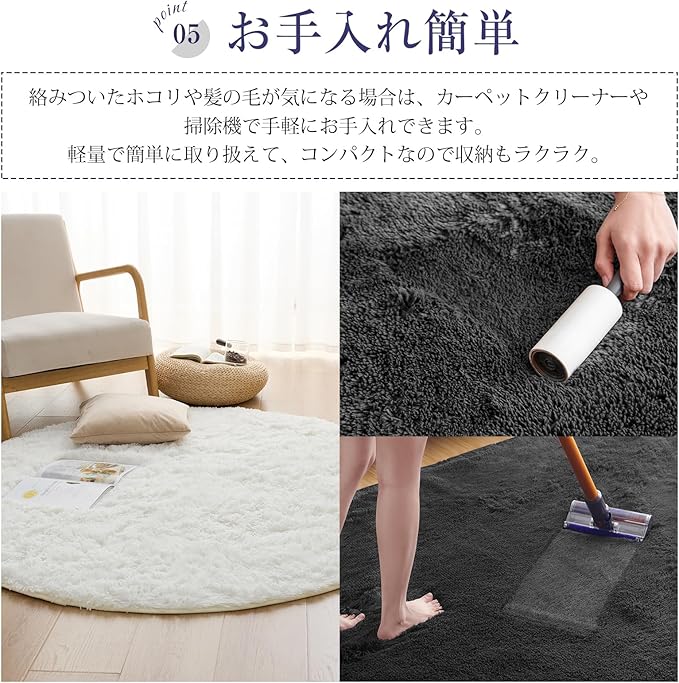 Matdeco シャギーラグ 円形 直径120cm 丸洗い可 防音 滑り止め付 ホットカーペット対応 ふわっと柔らかい 高密度 オールシーズン リビング用 じゅうたん カーペット 北欧風 無地ホワイト 軽量 通気性良 | KAZESHOP