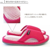 ☆中敷きにはクッション性に優れたメッシュが使用されており、弾力がある足あたりの良いルームシューズになりました♪☆通気性に優れた構造なので、より足を涼しく快適な状態をキープできちゃう1足♪