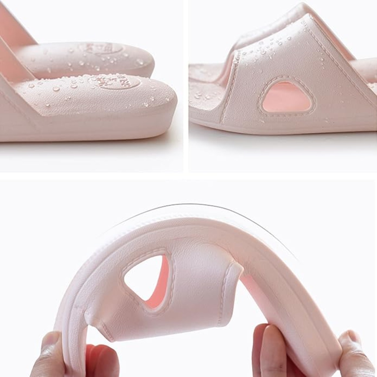 EVA素材を使用した軽量設計です。柔軟性があり、軽いソフトな履き心地とクッション性にも優れています。また、厚みのあるヒール部分もやわらかくクッション性の高いものに仕上げておりますので、履き心地もとても快適で、長時間使用しても疲れにくいです。さらに、スリッパやサンダル特有のパタパタとする音が軽減されている静音タイプですので、マンションなどでも階下を気にされることなく、安心してご使用いただけます。
