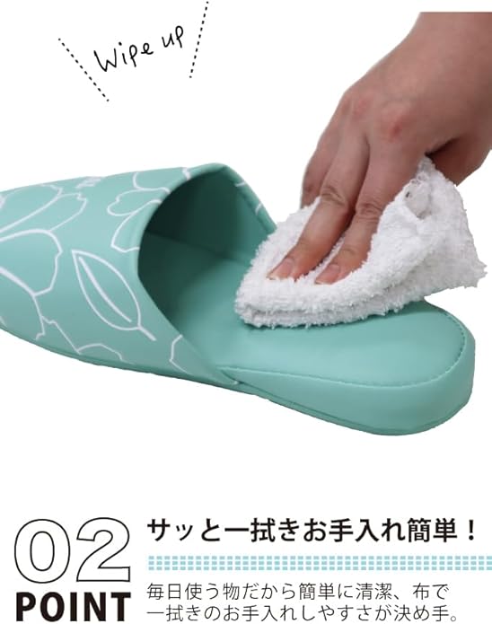 【汚れをサッとふけるPVC底】汚れている床を歩いても、スリッパが汚れにくくサッと水拭きも可能です。お手入れに手間がかからないのも、うれしいポイント。
