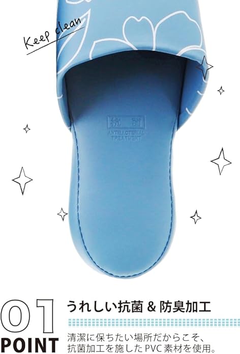 【うれしい抗菌加工】清潔に保ちたい場所だからこそ。スリッパ全体に抗菌加工を施しているので、安心して履いていただけます。