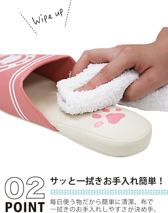 【汚れをサッとふけるPVC底】汚れている床を歩いても、スリッパが汚れにくくサッと水拭きも可能です。お手入れに手間がかからないのも、うれしいポイント。