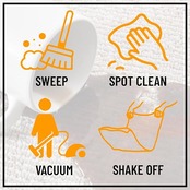 お手入れ方法:定期的に掃除機をかけ、湿った布で拭いてください。洗濯機洗いは不可。強力な液体洗剤や熱湯は使用しないでください。