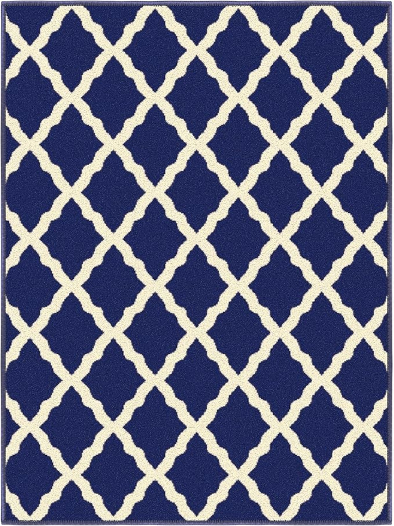 オットマンソン(Ottomanson) アクセントエリアラグ/マット カーペット お手入れ簡単 オシャレ トルコ製 ペルシャ風 滑りにくい 玄関 トレリスデザイン ネイビー 裏面ゴム 69 91cm 【日本正規輸入品】 | KAZESHOP