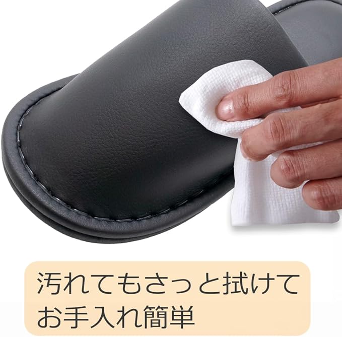 [オクムラ] スリッパ モノトーン つや消しビニールレザー L ブラック AAAA6911BK 来客用 業務用 お手入れ簡単 滑り止め付 | KAZESHOP