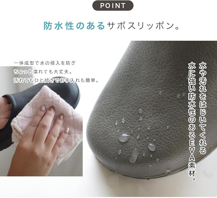 サッと履けて軽量!リラックスして履けるおしゃれスリッポン EVA素材なので濡れても汚れてもサッと拭き取るだけでOK!