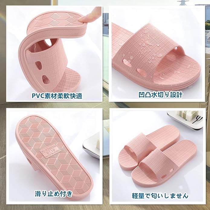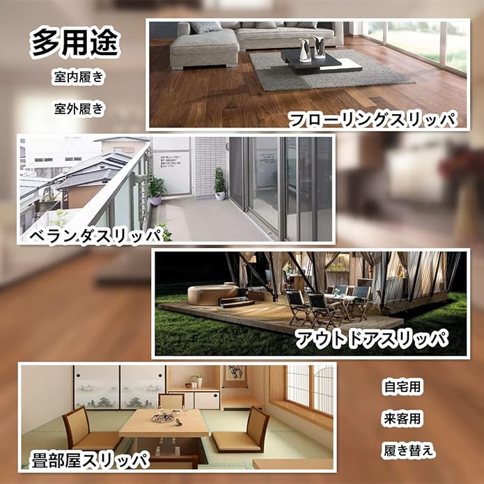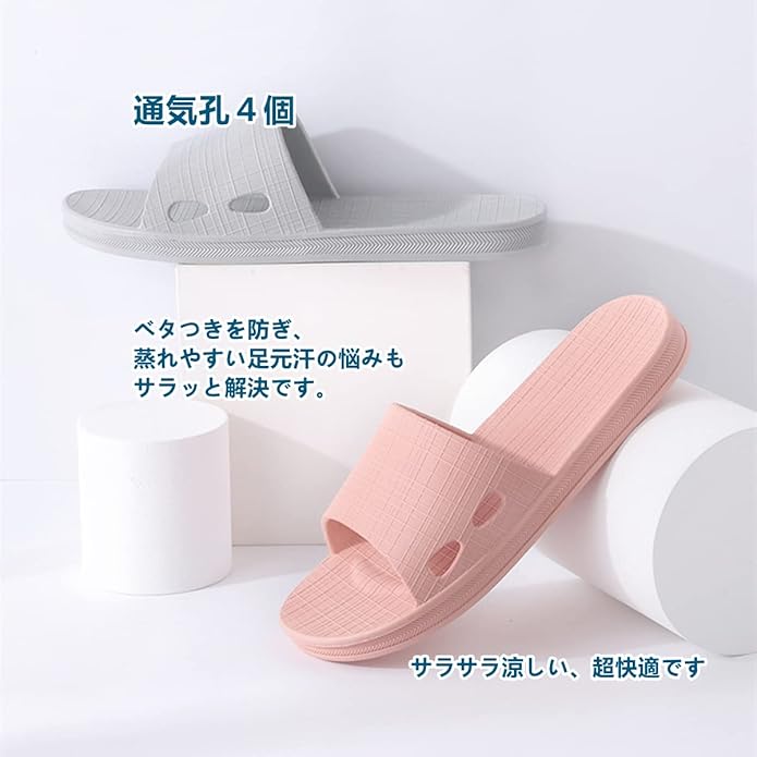 【活躍シーン】トイレサンダルとしてソールは凹凸水切り設計、水がたまっていないから、防臭衛生です。リビングルームサンダルとして汗によるベタつきを防ぎ、蒸れやすい足元汗の悩みもサラッと解決です。自宅用は勿論、来客用、旅行、履き替え、室内履き、アウトドア、ビーチサンダル、など幅広くお使えできます。どんなお部屋や内装にも合わせやすい、ベランダサンダルとしても可能です。