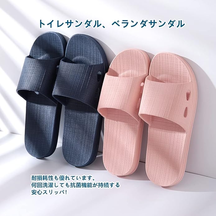【デザイン】30度ミクロ反りのデザイン構造で、靴底に合わせてラジアンで歩く時のストレスを軽減し、長く履いても疲れません。靴底にはPVCを採用され、靴底に深いしわの設計で滑りにくいです。音も出てにくいです。耐損耗性も優れています。何回洗濯しても抗菌機能が持続する安心スリッパ! スリッパ表面に滑り止め粒子を使用され、水濡れの際には足が滑る心配はありません。サンダルは匂いせず、柔軟快適で、軽量で履き心地が良いです。