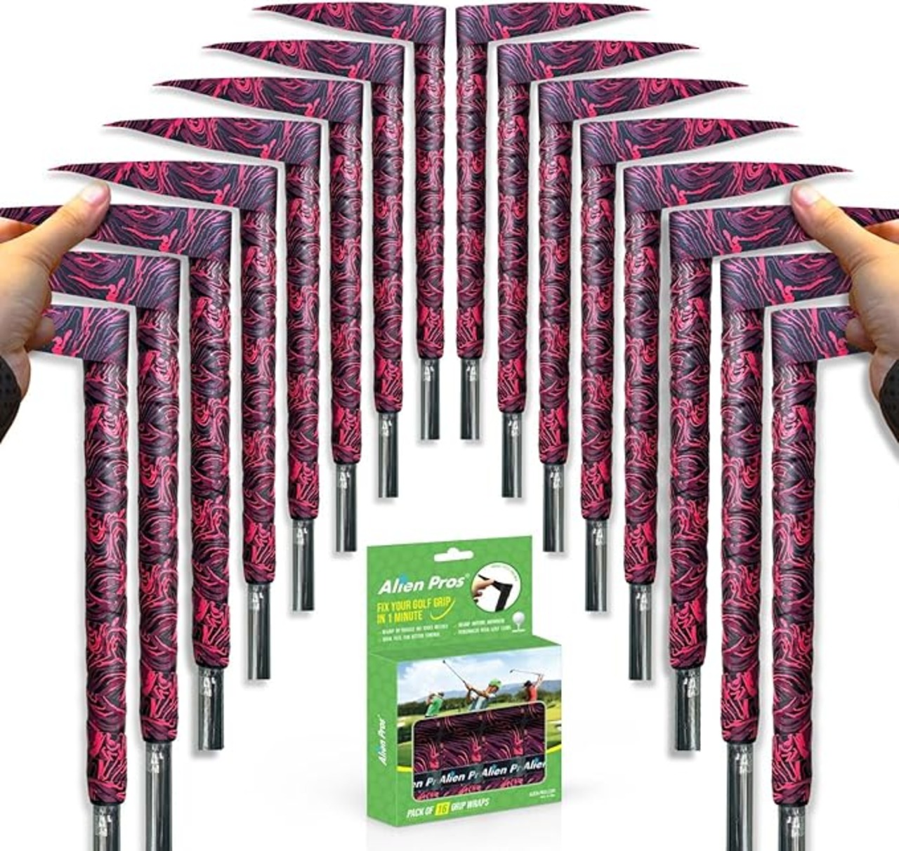 Alien Pros ゴルフグリップラッピングテープ(16枚パック) - 革新的なゴルフクラブグリップソリューション - 1分以内に新鮮なグリップ感をお楽しみください (16個パック、ファイヤー)