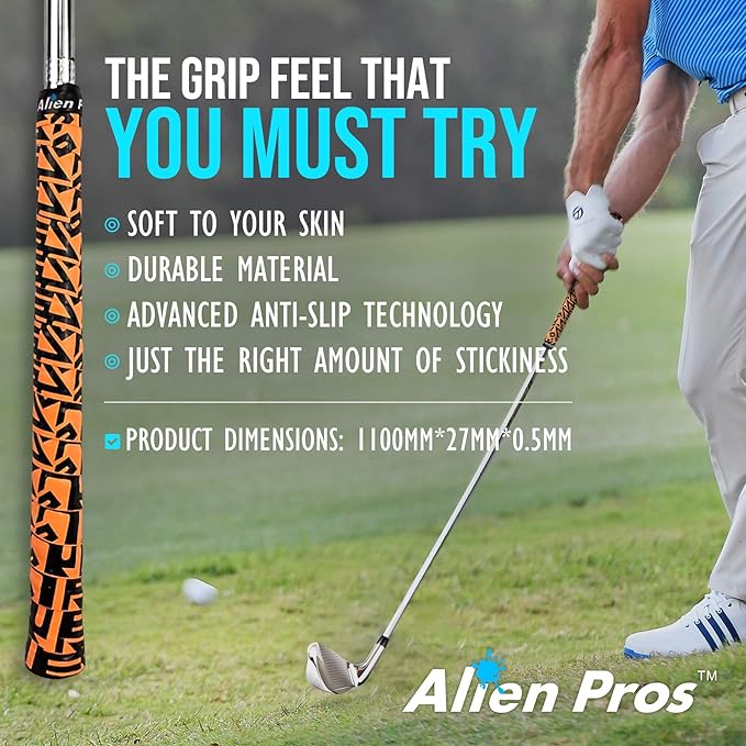 グリップの手間はついに終わりました:Alien Prosのゴルフグリップラッピングテープを使えば、剥がして包み、密封するだけで、溶剤やキットは必要ありません。 いつでも好きな場所で再グリップできます。 もう店に行く必要はありません。 1分以内に、お好みのスタイルの機能的なゴルフクラブグリップを手に入れることができます。