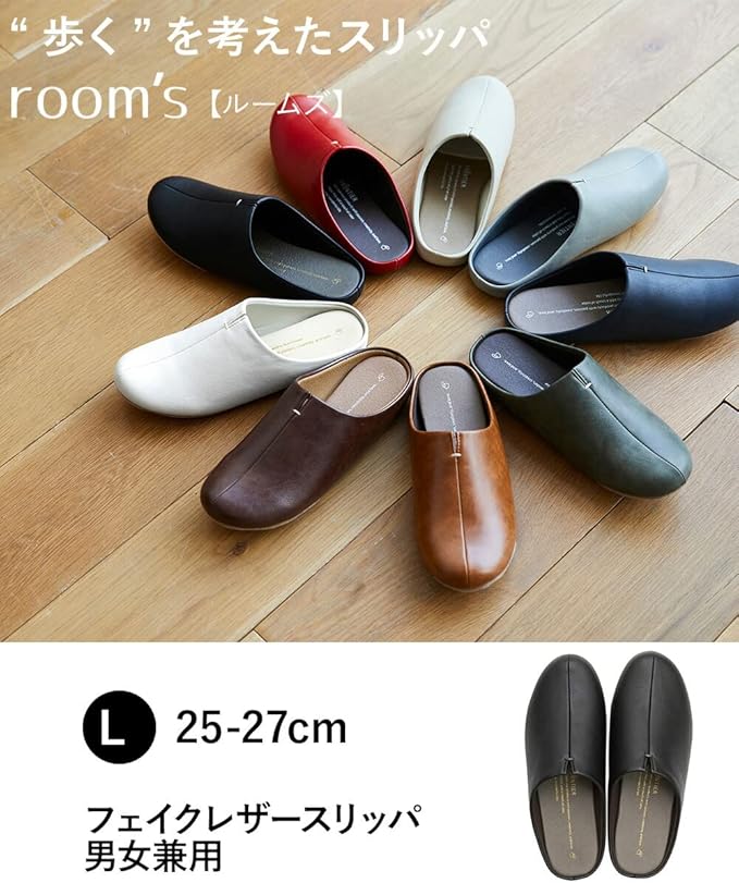 ■ご使用にあたっての注意事項 / ・ご使用上の注意を必ずお読みいただき、正しくお使いください。 / ・閲覧環境によっては色の出方が異なる場合がございます。 / room'sシリーズは本体内部にテキソンボードというボール紙のような土台紙を使用しております。 / その土台紙が濡れてしまうと強度が低下するので洗えない商品でございます。 / ただし、room'sの合皮部分、本体内部、インソール、外底は固く絞った布等で水拭き可能です。