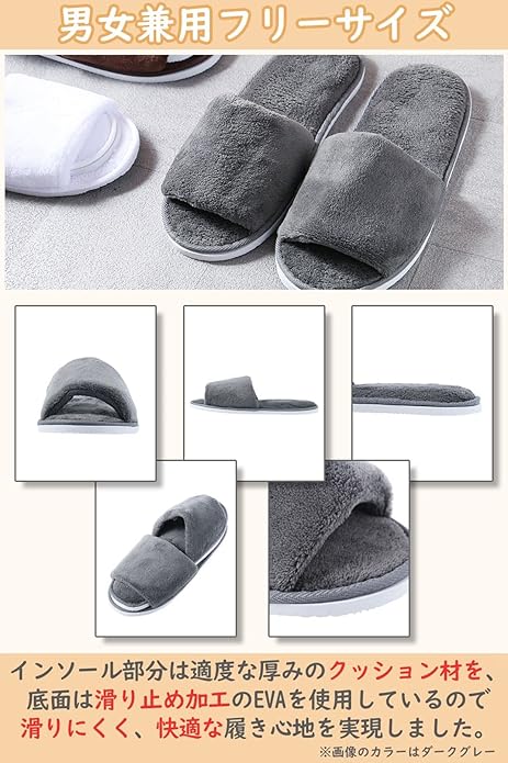 無地のシンプルなデザインのスリッパで、インテリアを選ばず、ご家族での普段使いはもちろん、来客用や職場用・トイレ・旅行などに幅広くお使いいただけます!