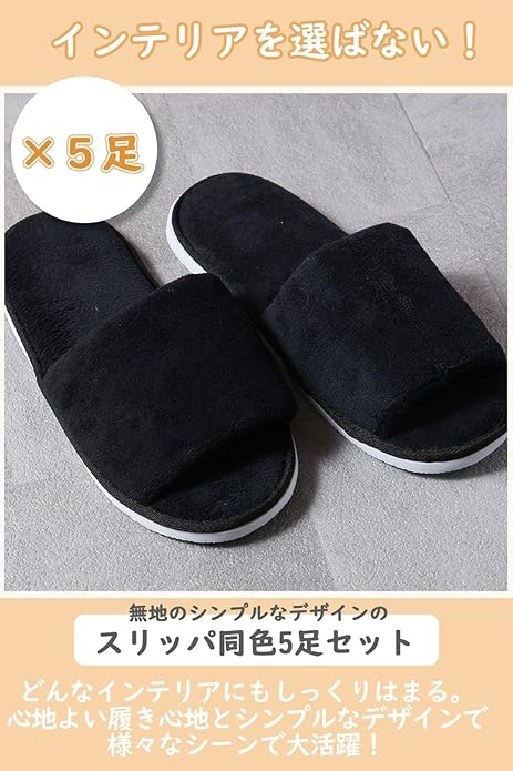 インテリアを選ばない、無地のシンプルなデザインのスリッパの同色5足セットです。