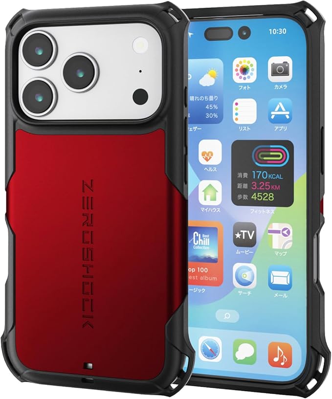 エレコム iPhone 17 Pro ケース カバー 耐衝撃 衝撃吸収 ZEROSHOCK [フィルム付き] ハニカム構造 4つ角ダンパー カメラレンズ保護設計 レッド PM-A25CZERORD | KAZESHOP