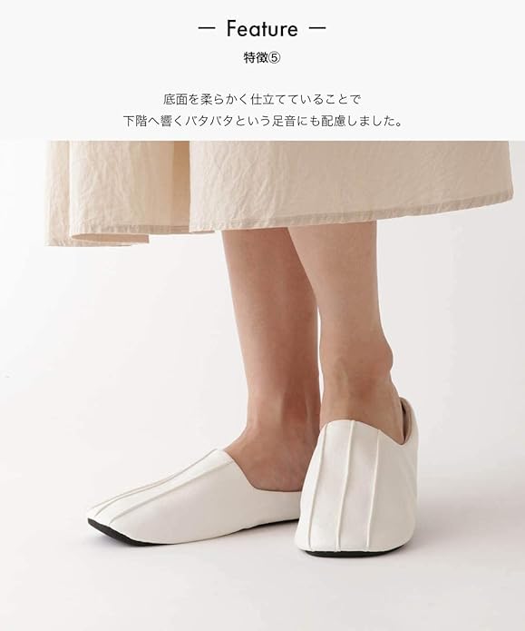 底面を柔らかく仕立てていることで下階へ響くバタバタという足音にも配慮しました。足先をカールさせた立体的なデザインは小さな段差でのつまずきを軽減します。