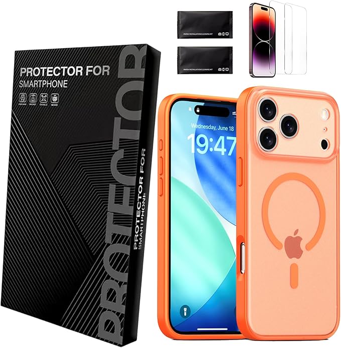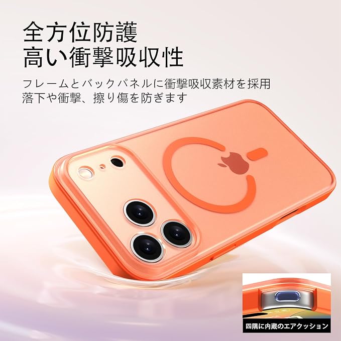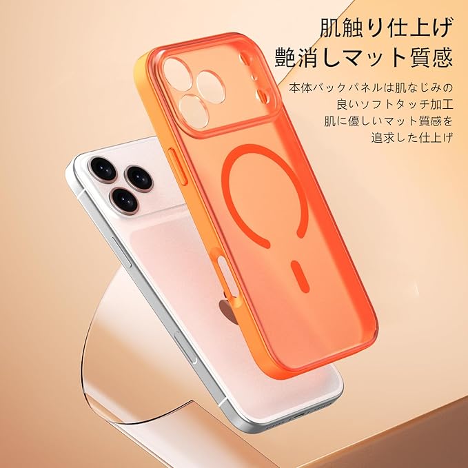【2点セット】iPhone 17 Pro Max/17 Pro ケース MagSafe対応 カメラレンズ保護付き 強化ガラスフィルム2枚付属 いPhone 17 Pro 半透明マット 肌触り 滑り止め 指紋防止 磁気吸着 精密穴あき 衝撃吸收 超高質感 黄変防止 米軍MIL規格 9H硬度 (コズミックオレンジ, iPhone 17 Pro Max) | KAZESHOP