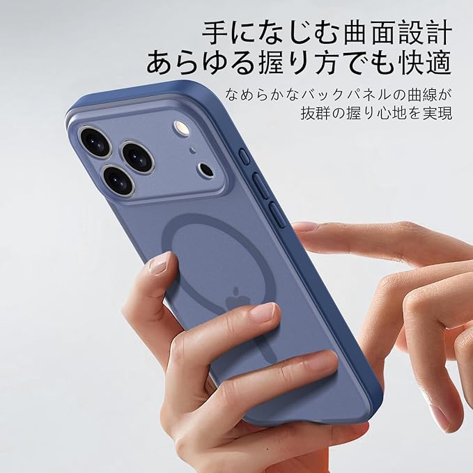 2. 【上質な肌触り・半透明マット美感】 背面は半透明のマット加工を施し、iPhoneのロゴをほのかに浮かび上がらせながら、指纹や汗汚れを徹底防止。シルクのようななめらかな肌触りは、手に馴染み滑り落ちる心配がありません。経年劣化に強い耐黄変素材を使用しており、美しさを長期持続します。