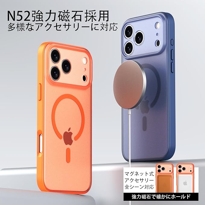 【2点セット】iPhone 17 Pro Max/17 Pro ケース MagSafe対応 カメラレンズ保護付き 強化ガラスフィルム2枚付属 いPhone 17 Pro 半透明マット 肌触り 滑り止め 指紋防止 磁気吸着 精密穴あき 衝撃吸收 超高質感 黄変防止 米軍MIL規格 9H硬度