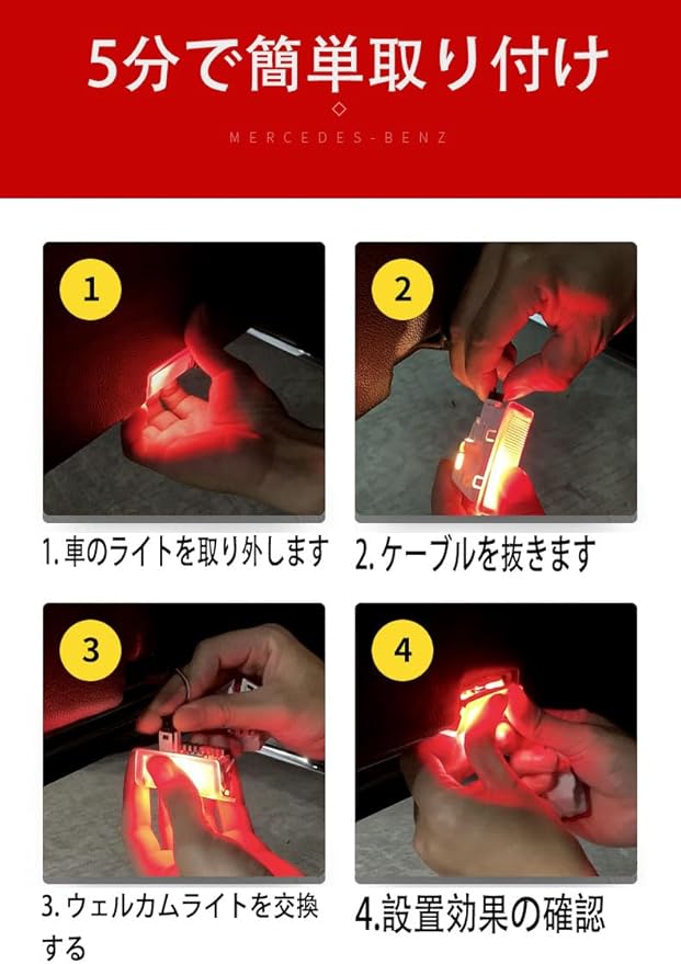 簡単な操作: ルートを変更する必要はなく、ハーネスを購入してデコードする必要もありません。 元のライトを取り外して、ウェルカムライトを取り付けてください。