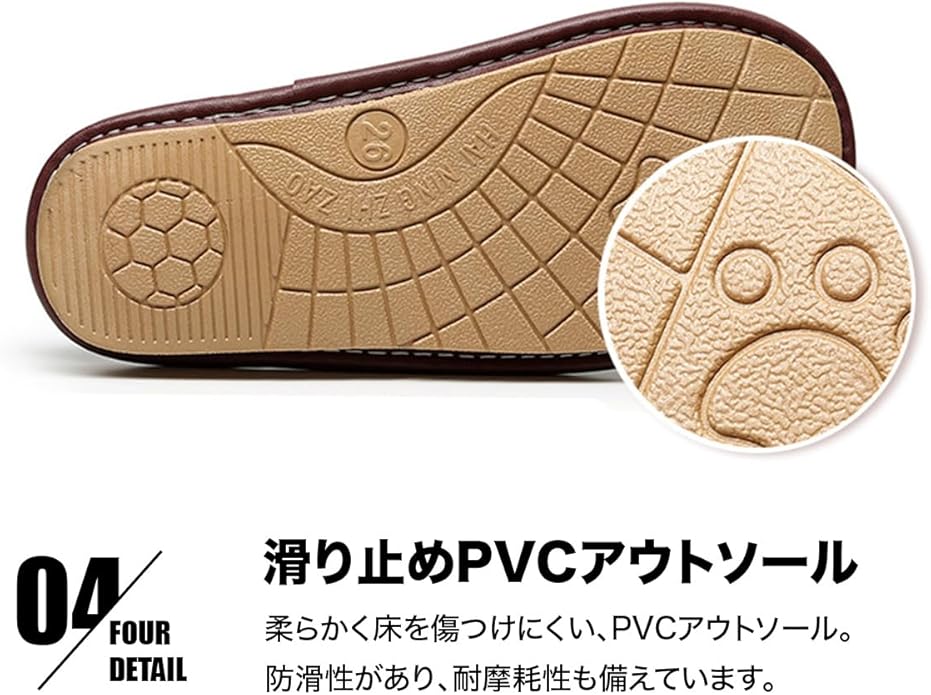 【高級PUレザースリッパ】上質なPUレザーで仕立て、汚れにくく、お手入れ簡単。足元を優雅なひとときに包みます。