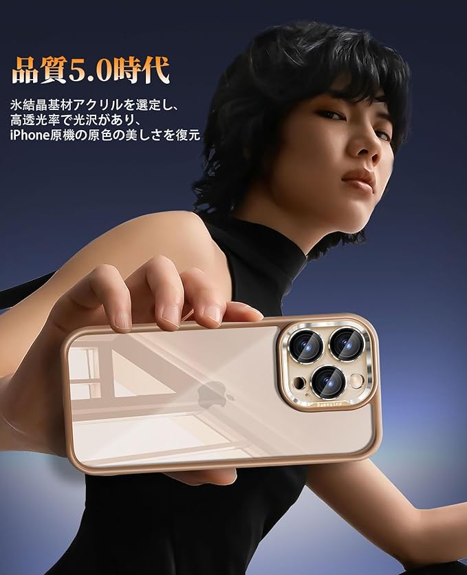 【超高透明度の強化アクリル背板で美しさと強度を両立】 超硬アクリル背板はiPhone の本体色を最大限に映し出す高透明度を実現、御iPhoneを守る同時に本体を使用体験戻します。ご使用中疑問がございましたら連絡ください、ご満足なアフターサービスを提供させていただきます。