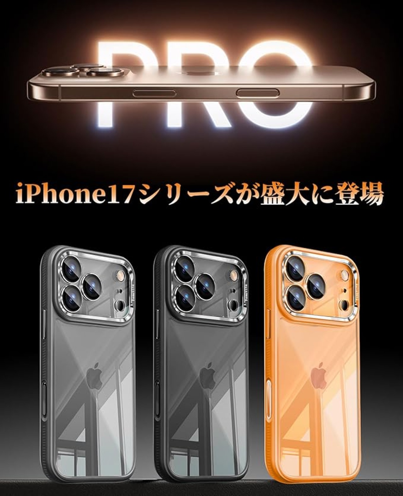 iPhone 17 Pro用ケース クリア シリコンサイド耐衝 撃滑り止め カメラコントロールボタン付き キラキラなカメラカバー着脱可能 オシャレなレンズ保護カバー 薄型 防塵ネット かわいい アイフォン 17プロ ケース オレンジ | KAZESHOP