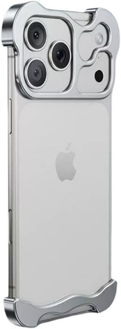 iPhone 17 Pro Max対応 アルミバンパー メタリック メッキ かっこいい バンパーケース 四隅保護 カメラレンズ保護シート 金属製 角 保護 コーナーバンパー,シルバー | KAZESHOP