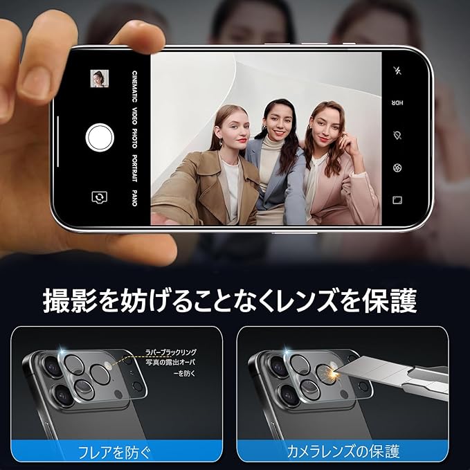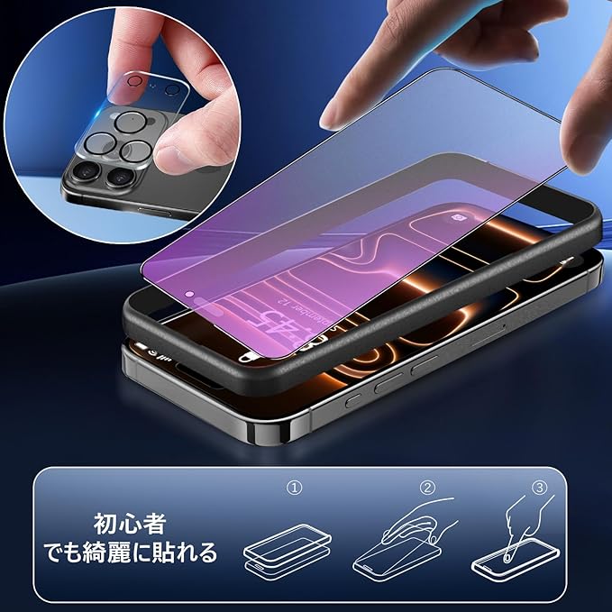 【10H硬度・高品質素材】bokangのiPhone17Promax用保護フィルム は、高アルミナガラスを採用し、10H硬度のガラスにハードコーティングを施すことで、外部からの衝撃を吸収し画面へのダメージを最小限に抑えます。強い衝撃を受けても割れや変形が起こりにくく、画面全体をしっかり保護します。さらに、iPhone17Promax専用のカメラ保護フィルムも同梱しており、レンズの破損を防ぎ、スマホ全体をキズや衝撃から守ります。