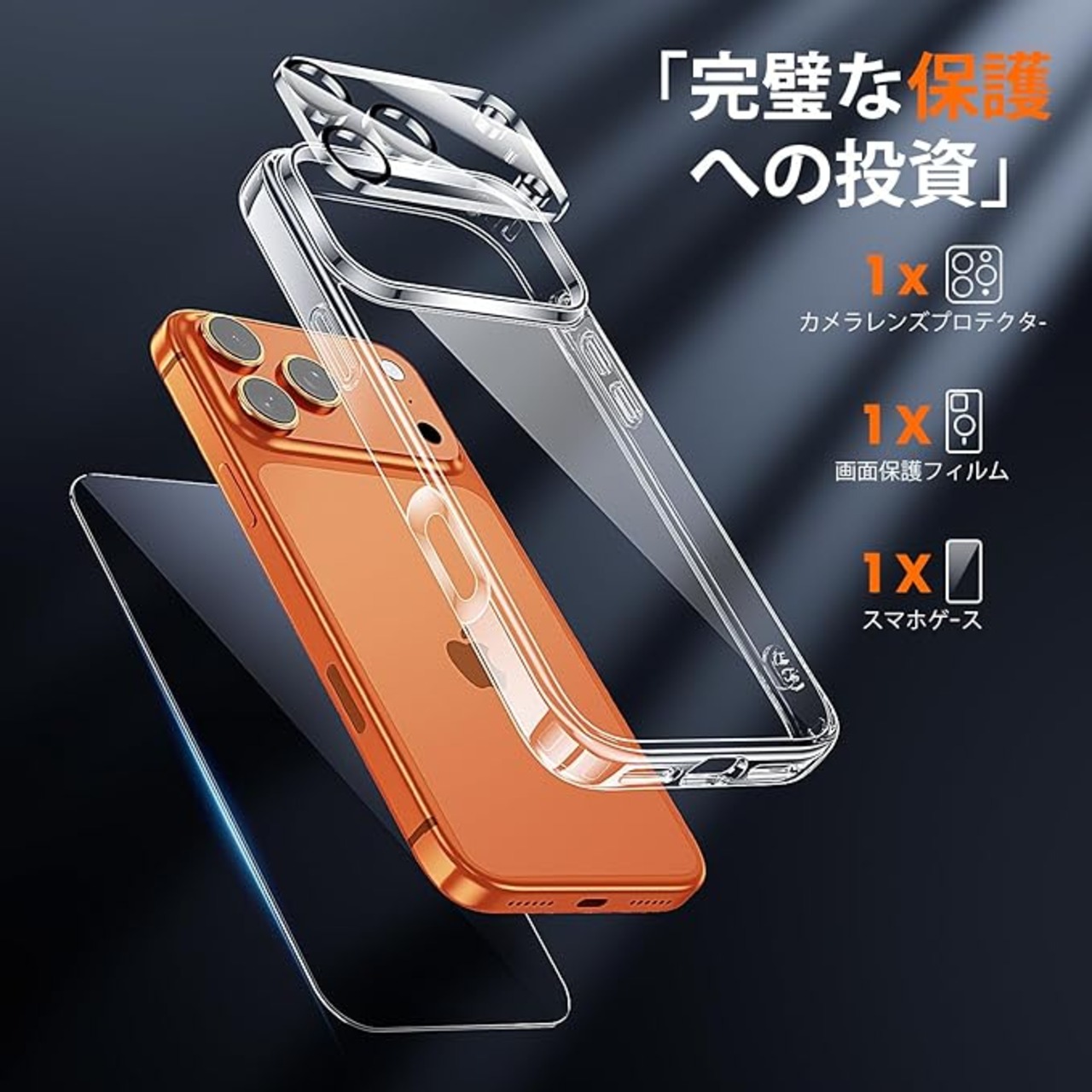 iPhone17 Proケース クリア 1 + 画面保護フィルム 1 + カメラレンズプロテクター 1