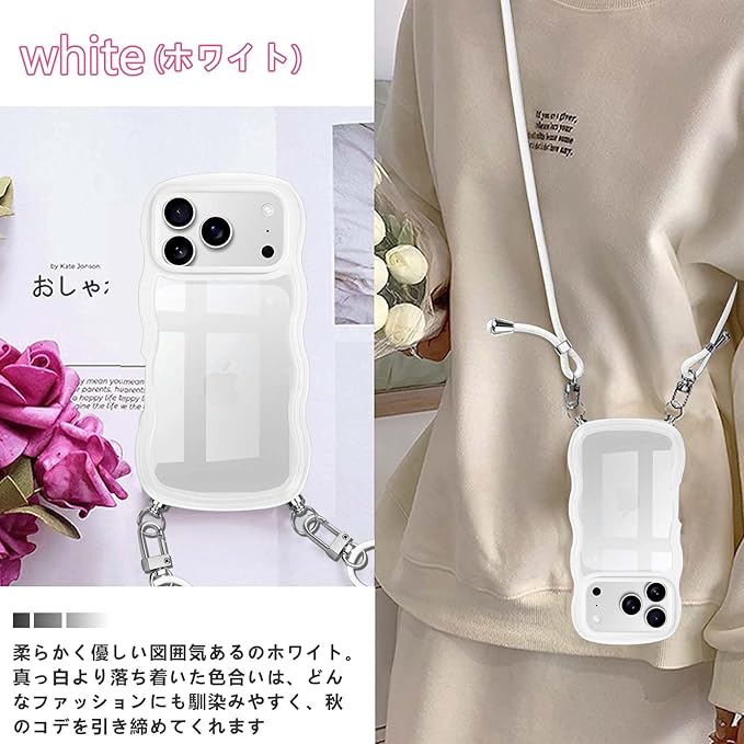 iPhone 17 Pro Max 用の ケース ショルダー 9H強化ガラスフィルム1枚 ゼロ失敗のガイド枠付き 自動貼り付け 貼り付け超簡単 いphone17 pro max クリア カバー スマホケース 創意 個性 肩掛け 首掛け 斜めかけケース 可愛い かわいい 韓国 透明 TPU 耐衝撃 アイフォン17promax(ホワイト) | KAZESHOP