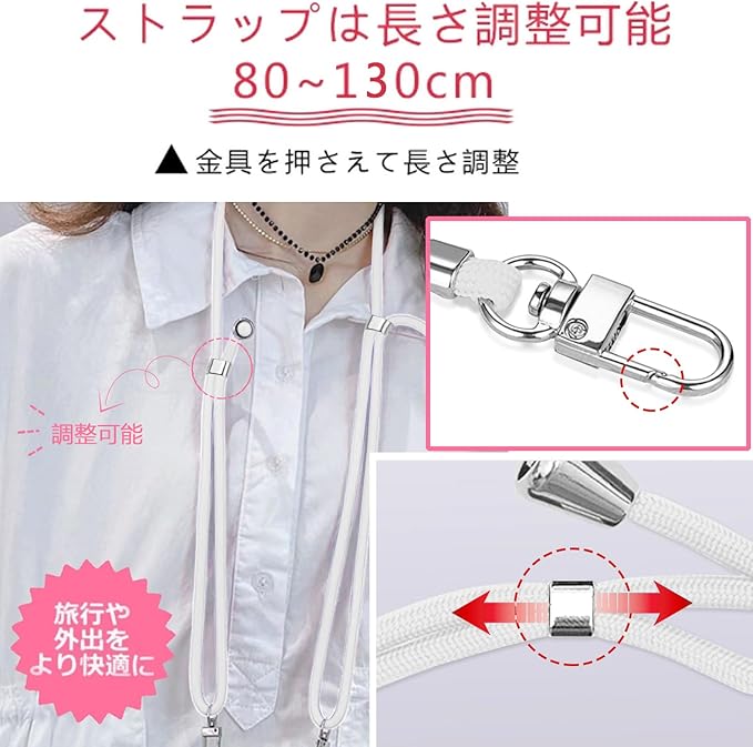 【長さ調整可能・使いやすさ】柔らかいナイロンストラップで首を快適に保ち、ストレッチの長さを調整でき、ストラップを取り外して、電話ケースを単独で使用できます。