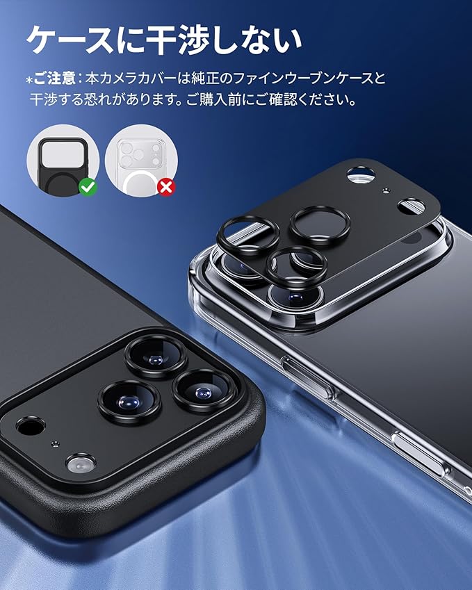 「対応機種」iPhone 17 Pro 用(三眼レフ) ご注意:カメラレンズの周囲まで覆うタイプのケースにはお使いいただけません。またiPhone純正ケースには対応しないので、予めご了承ください。
