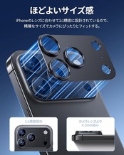 「貼り付け簡単」アイホン17プロ本体のカメラを綺麗にしてから、保護シールを剥がし、レンズに合わせてはめこむように貼り付けたら、しっかりとこすって密着させるだけで完了です。はめ込み仕様なので、剥がれにくいのも特長です。