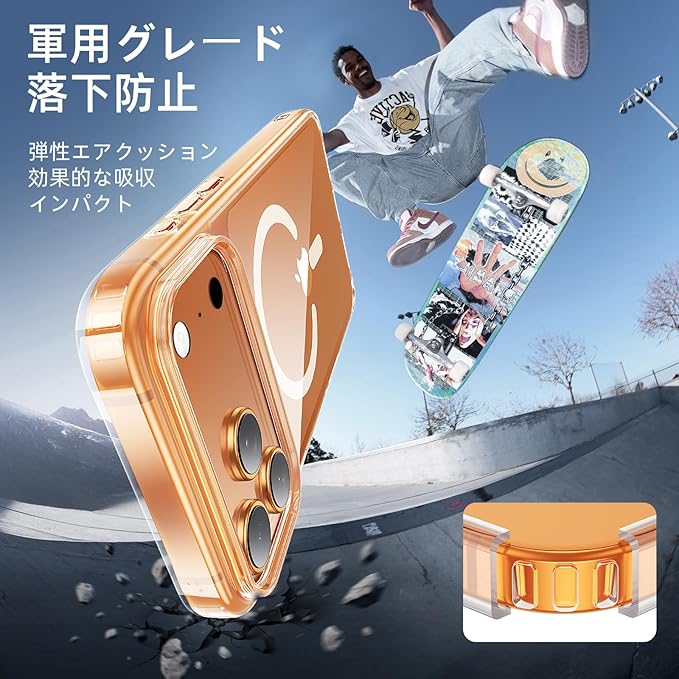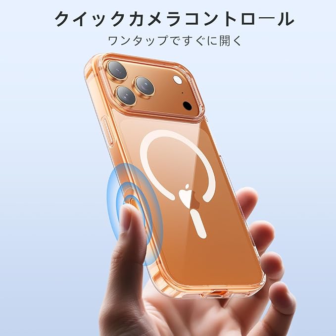 【落下の不安をゼロに!・MIL 規格対応】頑丈なPC背面と柔軟なTPUフレームを採用し、四隅にエアクッションを配置したデザインで、防塵、防傷、滑り止め衝撃吸収に優れ、日常使用に対する確かな保護を提供する iPhone スマホケース です。また、液晶画面より1.2 mm、カメラレンズより1.5 mm高い高低差設計を採用し、カメラ周囲を完全に覆うレンズ保護設計で、スマートフォン本体を徹底的に守ります。平面に置いてもうっかり落としてもスマートフォンを保護できる iPhone 17 Pro Max カバー です。