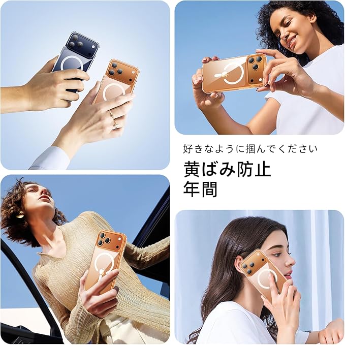 【MagSafe対応・強力な吸着充電】内蔵された強力なマグネットでピッタリと密着し、MagSafeに対応した全ての機能と完全に互換性があります。iPhone17ProMaxの充電効率が大幅に向上しました。 アイフォン ケース を外すことなく、MagSafe充電器、MagSafeバッテリー、MagSafe車載ホルダー、MagSafeリングなど、全てのMagSafeアクセサリーを使用できます。スマホを充電する時は、アイフォン ケースを装着したままMagSafe充電器に取り付けるか、Qi規格の充電器の上に置くだけです。充電できていなかったということを避けられるのが魅力です。より簡単で、より高速で、日常生活に便利な iPhone 17 Pro Max ケース です。