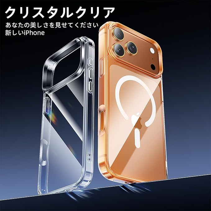 iPhone 17 Pro Max 用 ケース【強化フィルム2枚付き】Magsafe対応・米軍規格 いphone17ProMax スマホケース 半透明 耐衝撃 指紋防止 滑り止め マグネット搭載 ワイヤレス充電 耐久性 黄ば 全面保護 あいふおん17ProMaxケース 6.9インチ用,クリア | KAZESHOP